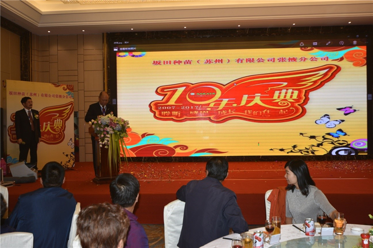 在喜慶祥和的氛圍中盛典儀式正式開啟,領(lǐng)導(dǎo)們熱情洋溢的致辭以及坂田種苗株式會社坂田宏社長精彩的演講視頻,充分表達(dá)了對張掖分公司十年來各項(xiàng)工作的肯定以及對于未來的期許,相信坂田張掖分公司一定不負(fù)眾望,繼往開來,越來越好!