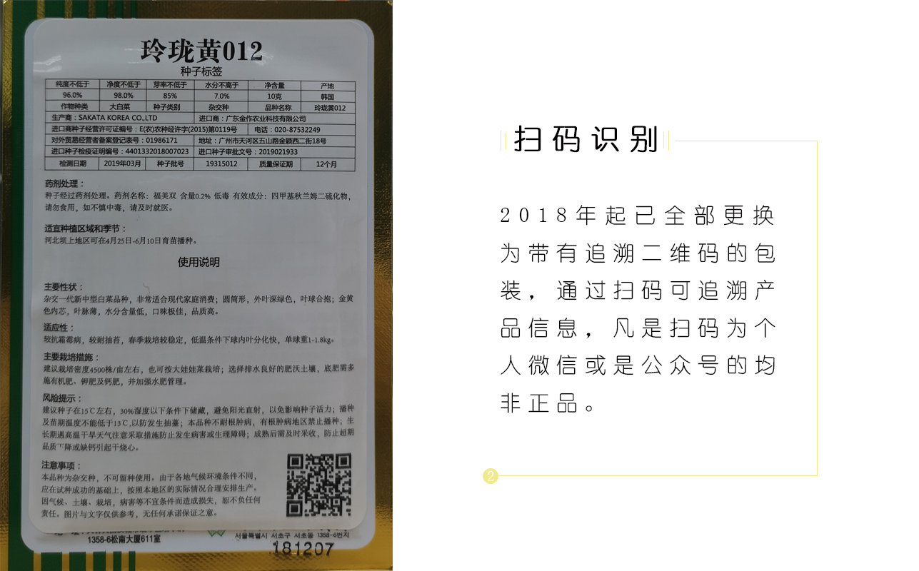 請(qǐng)認(rèn)準(zhǔn)“玲瓏黃012”正品包裝