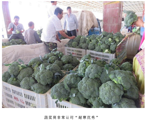 根據(jù)當?shù)胤N植“耐寒優(yōu)秀”的劉姓的農(nóng)戶提供的信息,他種植的“耐寒優(yōu)秀”每畝地大約2500株左右,租地后成本大約1500-2000元,如果市場價格穩(wěn)定,假設西蘭花價格2元/斤,畝產(chǎn)3000-4000斤左右,農(nóng)戶每畝一年兩茬凈收入可達將近萬元。他種植坂田公司的“耐寒優(yōu)秀”已經(jīng)3年,蔬菜市場價格穩(wěn)定的情況下,他都會獲得穩(wěn)定的高收入。
