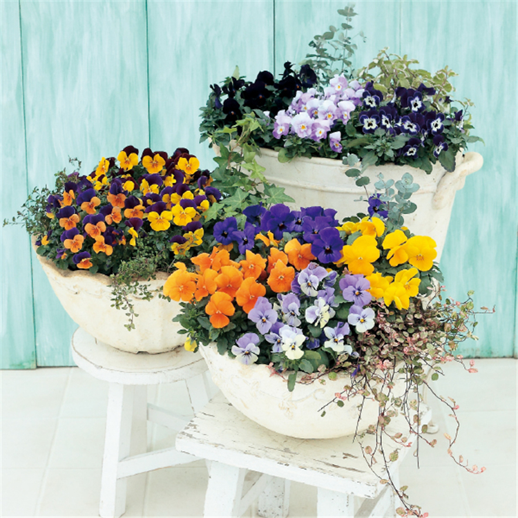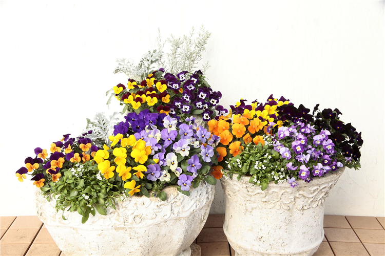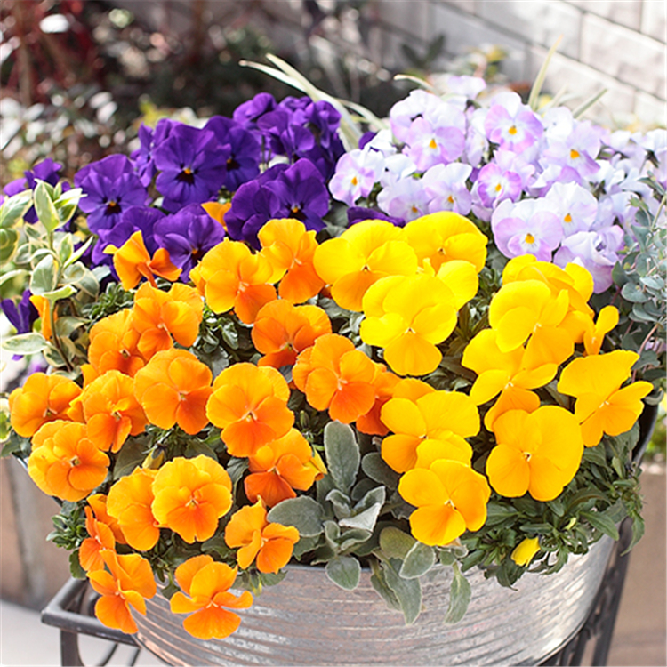 角堇(Viola cornuta),堇菜科堇菜屬多年生草本,莖較短而直立,花徑2.5~4cm?;ㄆ谝蛟耘鄷r間而異。角堇與三色堇花形相同,但花徑較小,花朵繁密。近年來角堇因其花卉量豐富,顏色鮮艷亮麗,耐熱性好,越來越多的受到市場的青睞。