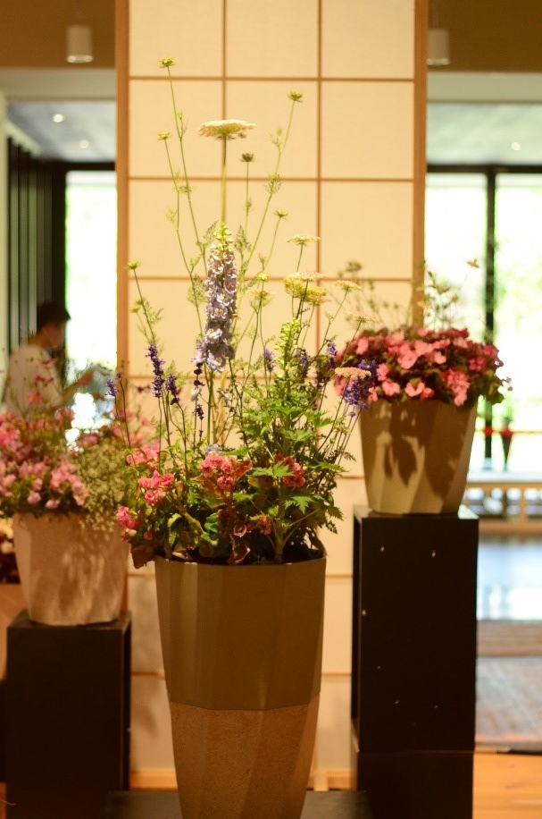 日本園作為國(guó)家展園內(nèi)的優(yōu)秀代表,憑借優(yōu)秀的園內(nèi)設(shè)計(jì),豐富的高水準(zhǔn)園藝、花藝展覽收獲了廣大人民群眾的廣泛好評(píng)。坂田種苗株式會(huì)社攜中國(guó)子公司坂田種苗(蘇州)有限公司(下稱坂田公司)于春秋兩季在日本館室內(nèi)戶外兩度展示,以組合盆栽、花藝設(shè)計(jì)為重心,融入中日獨(dú)特的傳統(tǒng)內(nèi)涵,展現(xiàn)出園藝文化雙重藝術(shù)價(jià)值。