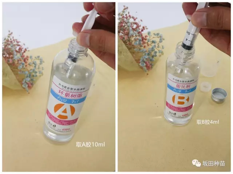 少量添加滴膠,直至滴膠能夠完全覆蓋住花材。